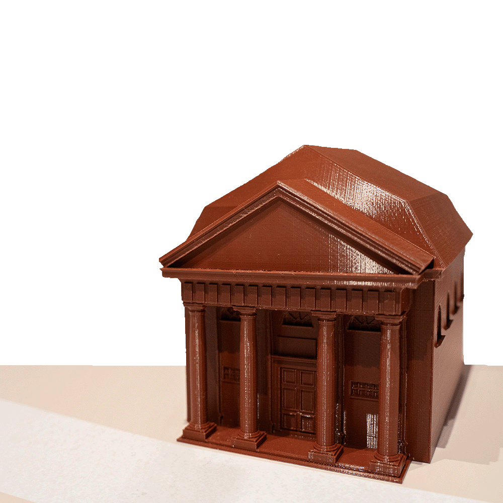 entstehen lassen. Auf einer von uns etwas angepassten Karte der Innenstadt thronen nun die 3D gedruckten Häuschen. Das braune Filament lässt sie beinahe lecker aussehen, als könnte man sie anknabbern.