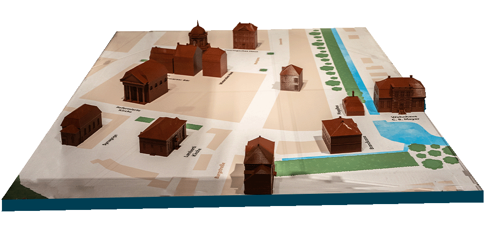 In einem virtuellen Rundgang erfährt man per Knopfdruck mehr über die Bauten von C. B. Meyer, springt von Haus zu Haus und schnuppert beinahe die