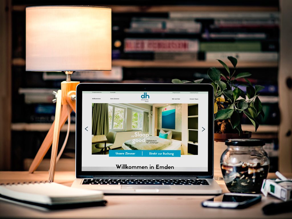 Um das einmalige Gefühl in einer lebendigen Stadt wie Emden einzufangen, statteten wir sowohl die Webseite als auch das Hotel selbst mit